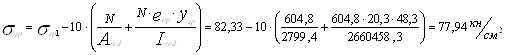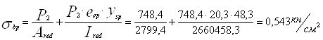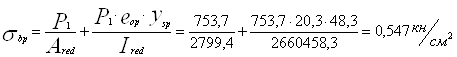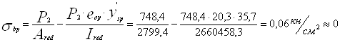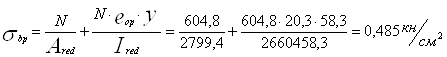 Напряжение обжатия в бетоне в крайнем верхнем волокне: