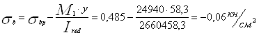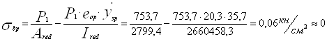 Напряжение обжатия в бетоне в крайнем нижнем волокне:
