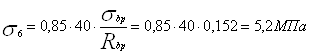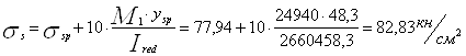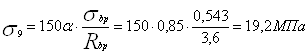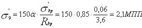 σbp – напряжение на уровне арматуры; Rbp – «отпускная» прочность бетона (прочность, при которой отпускается арматура) Rbp=(0,7…0,9)R. Класс бетона В40 Rbp=0,9∙40=36МПа. Суммарные напряжения в арматуре после учета первых пяти потерь.