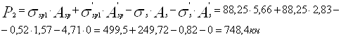 учетом коэффициента учитывающий неточность натяжения арматуры: