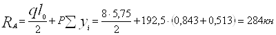 Dmax = γf · Fn · Σyi = 1,1·175·( 1 + 0,638+0,267)=1,1*175*1,905 = 367 кН Dmin = Dmax