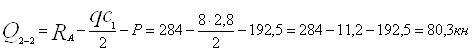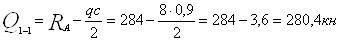 Наибольшая поперечная сила от полной расчетной нагрузки: