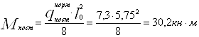 Всего: gn =29,9 g=31,26 Максимальный момент в середине пролета от полной расчетной нагрузки: