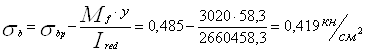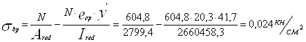 Напряжение в бетоне от внешней нагрузки с учетом предварительного напряжения: - при наличии крана внизу: