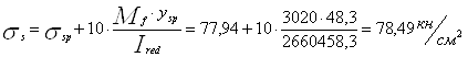 Выносливость по бетону достаточна. Напряжения в растянутой арматуре после окончания обжатия бетона: