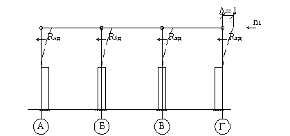 RA = RБ = Так как количество пролетов равняется трем, то смещение верха колонны не учитываем. Рассмотрим нагружение на крайнюю колонну по оси А силой Дмах,а на среднюю колонну по оси Б силой Дmin.Такое нагружение несимметричное. Усилия в колонне: