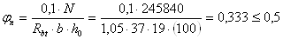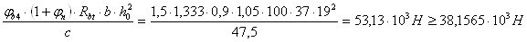 и поскольку 0,16×jb4×(1+jn)×Rbt×b=0,16×1,5×(1+0,333)×0,9×1,05×37×100=1118.6Н/см >118.446 Н/см, принимают с=2,5×h0=2,5×19= 47,5 см. Другое условие: при Q = Qmax – q1×c = 43.7827×103 – 118.446×47,5 = 38.1565×103 H,