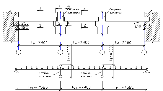 Рис. 3 Опирание плиты на ригель. 4.3 Расчётная схема, расчётное сечение