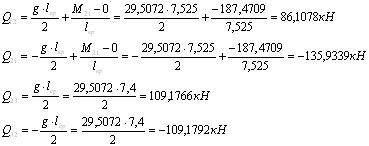 Опорные моменты: от постоянной нагрузки: M=a×g×l2. от временной нагрузки: M=b×u×l2. от полной нагрузки: M=(a×g+b×u)×l2. Поперечные силы: