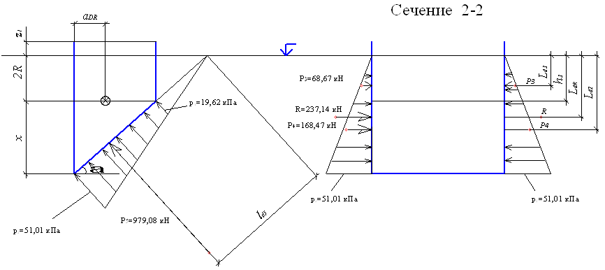 = h = a-z S Р Р Центр приложения силы Р ld2 = h; ld2 = 5,8-0,6 = 5,2 м
