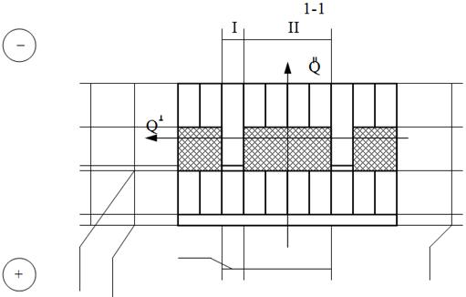 а) Конструкцию разделяют плоскостями, параллельными потоку тепла Q” на участки Ι и ΙΙ, определяют термические сопротивления участков RI и RII и площади их поверхности FI и FII с размером стены по высоте 1 м. FI = 0,12 м2 FII = 0,79 м2 Термические сопротивления RI и RII определяются по формуле: