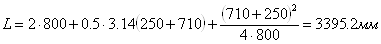 де То – висота поперечного перетину паска, мм; άmin=0.55 (250+710)+13.5=541.5 мм άmax=d1+d2 (2.7) άmax=250+710=960 мм Приймаю відстань ά=800 мм Довжина паска, L, мм., розраховується за формулою:
