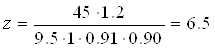 Необхідне для передачі заданої потужності число пасків, z, розраховується за формулою: