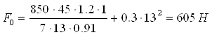 Натяг паска, F0. Н, розраховується за формулою: