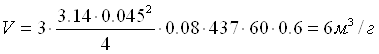 де: z – кількість плунжерів, шт.; Д – діаметр плунжера, м; S – хід плунжера, м;. n – частота обертів колінчастого вала, об./хв; ηоб – об'ємний коефіцієнт корисної дії.