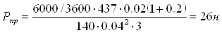 де [Рn·υ] = 24000–103 Н/м·с нормативна величина для бронзових підшипників.