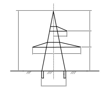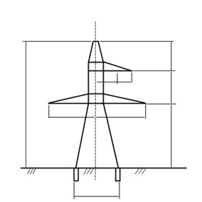 Рис. 2 Металлическая промежуточная опора П 330-3. Закрепление анкерно-угловых и промежуточных опор принимаем на унифицированных фундаментах, устанавливаемых в копаные котлованы. Выбор элементов фундаментов производим по технологической карте К-I-19 согласно заданного грунта. Характеристики элементов фундаментов и объемы земляных работ приводим в таблице ниже. Таблица 1.10 Характеристики фундаментов опор.