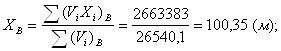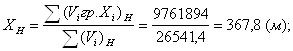 Рис. 2.3.1. Определение координат геометрических центров фигур Суммарные статические моменты относительно той или иной оси получаем как сумму статических моментов, найденных путем умножения объемов работ в каждом из элементарных участков на расстояние от геометрического центра этого участка до соответствующей оси координат. Xi, Yi – координаты центра тяжести фигуры; XB, YB – абсцисса и ордината геометрического центра выемки; XН, YН – абсцисса и ордината геометрического центра насыпи; Vi – объем работ в каждом из элементарных участков, м3; L – средняя дальность перемещения грунта, м. Таблица 2.3.2. Определение средней дальности перемещения грунта (методом статических моментов)