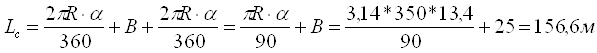 Lc – довжина підходу. Lх – проекція обходу. A – відстань між вісями старого мосту та вісью мосту на ближньому обході (згідно з завданням). B – довжина прямої вставки між зворотніми кривими (згідно з завданням). R – радіус кривих на підході (згідно завданням).