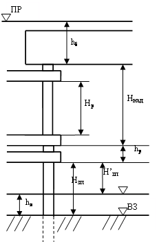 ▼ПРт.м. =▼ ПРк.м. – h1=46-3,4=52,27 м