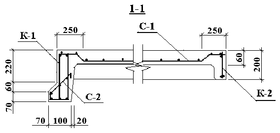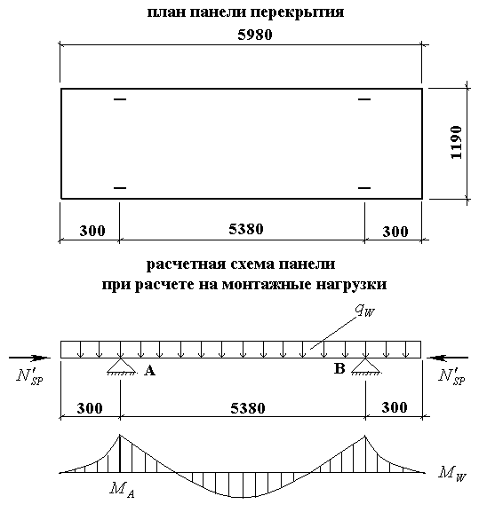 В темное время суток территория освещается прожекторами, установленными по периметру в углах стройплощадки. Расчет лобового ребра: На лобовое ребро действуют следующие нагрузки: - постоянная и временная, равномерно распределенные от половины пролета полки и от собственного веса