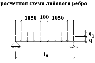 равномерно распределенная нагрузка от опорной реакции маршей, приложенная на выступ лобового ребра и вызывающая его изгиб. Поперечная сила на опоре
