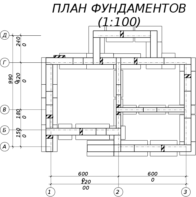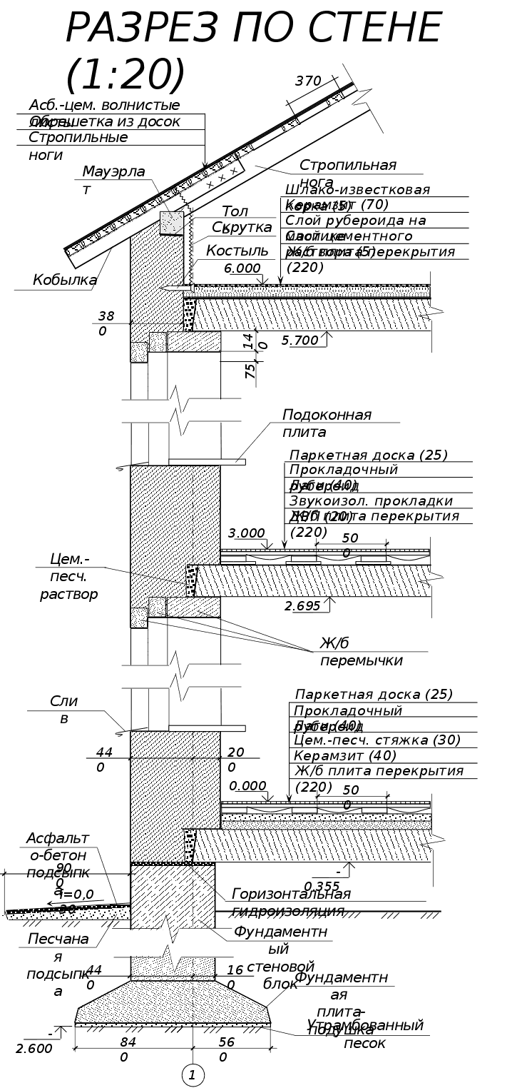 5 КОНСТРУКТИВНЫЕ РЕШЕНИЯ5.1 Фундаменты и цоколиФундаменты – подземные конструкции, передающие нагрузки от здания на грунт. В данном здании запроектирован сборный ленточный фундамент, в связи с тем, что неподалеку от места строительства расположен завод железобетонных изделий. Сборные ленточные фундаменты состоят из плит-подушек, укладываемых в основание фундаментов и стеновых блоков, которые являются стенами подземной части здания. Фундаментные плиты-подушки укладываются на выровненное основание с песчаной подсыпкой толщиной 10 см. Под подошвой фундамента нельзя оставлять насыпной или разрыхленный грунт. Он удаляется и вместо него насыпается щебень или песок. Углубления в основании более 10 см заполняются бетонной смесью. Плиты-подушки под наружные стены имеют ширину 1400 мм, а под внутренние — 800 мм. При проектировании размеры фундаментных плит-подушек приняты согласно ГОСТ 13580-85. Плиты-подушки укладываются с разрывами. В местах сопряжения продольных и поперечных стен плиты подушки укладываются впритык и места сопряжения между ними заделываются бетонной смесью. Поверх уложенных плит-подушек устраивается горизонтальная гидроизоляция и по ней сверху цементно-песчаная стяжка толщиной 30 мм, в которую укладывают арматурную сетку, что ведет к более равномерному распределению нагрузки от вышележащих блоков и конструкций. Диаметр стержней сетки — 6 мм. Шаг — 30 см. По завершении устройства цементной стяжки котлован засыпается до верха смонтированных железобетонных фундаментных подушек. Затем укладываются бетонные фундаментные блоки с перевязкой швов в три ряда, поверх которых устраивается горизонтальный гидроизоляционный слой из двух слоев рубероида на мастике. Назначение гидроизоляционного слоя — исключение миграции капиллярной грунтовой и атмосферной влаги вверх по стене. Ширина фундаментных блоков под наружные стены равна 600 мм, под внутренние — 400 мм. При проектировании размеры фундаментных стеновых блоков приняты согласно ГОСТ 13579-78. Глубина заложения фундамента составляет 1,8 м, что превышает глубину промерзания грунтов, составляющую в данном районе строительства — 1,15 м. Цоколь здания не выступает и не западает, образуя со стеной здания единую плоскость. Цоколь облицовывается цементно-песчаным раствором на основе гидрофобного цемента и выполняется декоративная расшивка, что придает зданию художественную выразительность. По всему периметру здания выполняется отмостка шириной 900 мм с уклоном i=0,030. Она предназначена для защиты фундамента от дождевых и талых вод, проникающих в грунт близ стен здания. 5.2 СтеныСтены здания предназначены для ограждения и защиты от воздействий окружающей среды и передают нагрузки от находящихся выше конструкций — перекрытий и покрытий к фундаменту. При возведении стен здания применяется ручная кладка с горизонтальной и вертикальной перевязкой швов. Для кладки наружных и внутренних стен применяется сплошной силикатный кирпич. Кладка стен осуществляется на цементно-песчаном растворе. Толщина наружных стен определяется на основании теплотехнического расчета. Изначально толщина наружной стены предполагается равной 640 мм. Такая толщина необходима для обеспечения устойчивости по отношению к ветровым и ударным нагрузкам, а также для увеличения тепло- и звукоизоляционной сп