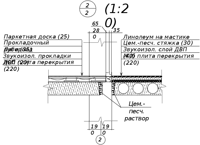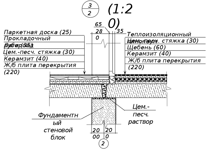 Д = 0,016111,091 +0,7910,92 +0,021511,091 = 9,04 что удовлетворяет условию Д>7. Отсюда толщина стены будет: = 1+2+3 = 0,015+0,64+0,02 = 0,675 м Окончательно принимаем толщину кирпичной кладки равной 640 мм. 5.3 Внутренние стены и перегородкиВнутренние стены и перегородки – это внутренние вертикальные ограждающие конструкции в зданиях. Внутренние стены выполняют в здании ограждающие и несущие функции, перегородки — только ограждающие. Запроектированы внутренние несущие стены и перегородки в виде кладки из кирпича с перевязкой швов толщиной 380 мм, перегородки имеют толщину 120 мм. На внутренние несущие стены опираются перекрытия и они разделяют помещения. Для кладки стен и перегородок используется силикатный кирпич. Перегородки устанавливаются на плиты перекрытия по слою толи. На поверхность внутренних стен и перегородок здания наносится слой штукатурки толщиной 20 мм. Конструкции данных стен и перегородок удовлетворяют нормативным требованиям прочности, устойчивости, огнестойкости, звукоизоляции. 5.4 ПерекрытияПерекрытия – горизонтальные несущие и ограждающие конструкции, делящие здания на этажи и воспринимающие нагрузки от собственного веса, веса вертикальных ограждающих конструкций, лестниц, а также от веса предметов интерьера, оборудования и людей, находящихся на них. Эти нагрузки передаются от перекрытий на несущие стены здания. В данном здании запроектировано перекрытие, состоящее из многопустотных железобетонных плит. На наружные стены перекрытия укладываются от внутреннего края стены на 200 мм, а на внутренние несущие стены на 190 мм. Для чердачных и подвальных перекрытий, отделяющих отапливаемые помещения от не отапливаемых, предъявляются теплозащитные требования. Поэтому чердачное перекрытие имеет слой утеплителя толщиной 7 см из керамзита. Перекрытия обеспечивают звуко- и теплоизоляцию, они также отвечают высоким требованиям жесткости и прочности на изгиб. 5.5 ПолыПолы – это конструкции, постоянно подвергающиеся механическим воздействиям. Полы по междуэтажным перекрытиям должны обладать звукоизоляционными свойствами. В санитарном узле и в бойлерной покрытие пола выполняется из керамической плитки. В зависимости от назначения помещений и расположения их по этажам, используются следующие конструкции полов: