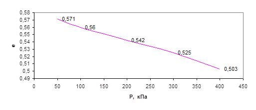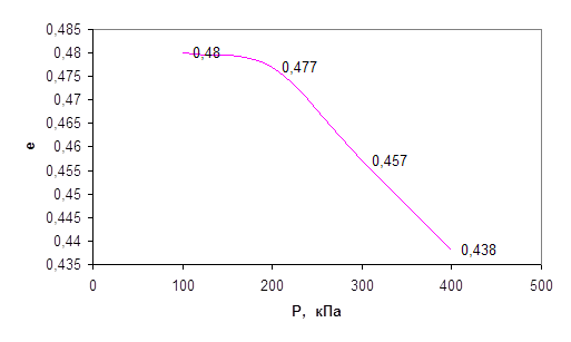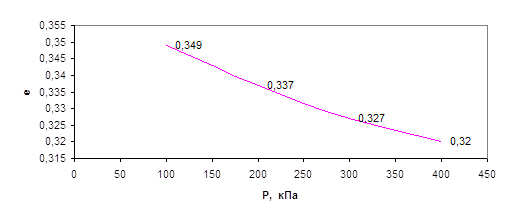 e1 – коэффициент пористости при P1=100 кПа