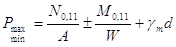 соответственно среднее, максимальное и минимальное давление на грунт под подошвой