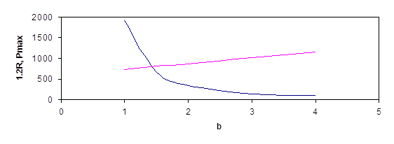 Находим значения Pmax, 1.2R при b=1;1,5; 2; 3; 4; и строим график зависимости между b и Pmax,1.2R. Точка пересечения, дает нам искомую величину b.