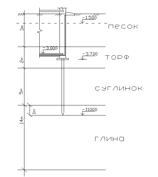 | Наименование грунта и его физическое состояние | Песок гравелистый плотный | Суглинок мягкопластичный | Песок пылеватый плотный |