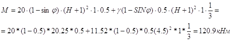 Опрокидывающий момент по глубине(Н+1) составит: