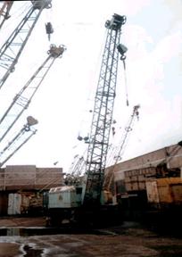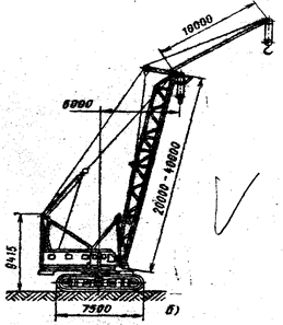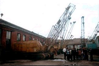 Буровые машины применяют на карьерах нерудных материалов, где приходится бурить шпуры для закладки взрывчатых веществ; для бурения шпуров в мерзлых грунтов, а также для размещения зарядов; бурение шпуров небольшого диаметра; крепления технологического оборудования. С этой целью бурят отверстия диаметром до 45 мм в несущих конструкциях, в бетоне, железобетоне и кирпиче. Кроме того, требуется бурить котлованы значительного диаметра для установки мачт линий электропередач, для сооружения буронабивных свай, укрепление фундаментов в скальных породах при сооружении гидроэлектростанций. Существуют различные способы бурения: 1. ударное бурение 2. вращательное 3. ударно – поворотное 4. ударно – вращательное 5. шарошечное 6. термическое Выбор способа бурения зависит от физико – механических свойств пород, а также от условий работы. Одноковшовые экскаваторы с гибкой подвеской рабочего оборудования В народном хозяйстве широкое применение для разработки, погрузки и укладки получили одноковшовые экскаваторы. Их выполняют в большом диапазоне мощности производительности и универсальности. Экскаватор состоит из рабочего и силового оборудования, системы управления, трансмиссий, поворотной платформы для размещений механизмов, различных приборов, аппаратов и ходового устройства. Рабочее оборудование экскаваторов с прямой и обратной лопатой состоит из рабочего органа, стрелы и рукояти. Рабочее оборудование экскаваторов с драглайном не имеет рукояти, а ковш подвешивается к стреле на канате с помощью упряжки. К рабочему оборудованию относятся также блоки, направляющие устройства и канаты, которые передают движения различным элементам рабочего оборудования. Для выполнения земляных работ различного характера в разных условиях строительные экскаваторы снабжаются ковшами и другим сменным рабочим оборудованием. Экскаваторы малой мощности используются для незначительных объемов земляных работ, а также при различных вспомогательных и подготовительных строительных работах – валке и корчевке леса, забивке свай, уплотнении дорожных покрытий, монтажных и погрузо – разгрузочных работах. Если на экскаваторе может быть установлен хотя бы 3 вида сменного оборудования – прямая лопата, обратная лопата и драглайн, то такие экскаваторы можно снабжать и другими видами рабочего оборудования и их называют универсальными. Однако, чаще в комплект сменного оборудования входят оборудование лопаты, обратной лопаты, драглайна, грейфера и крана. Грузоподъемные краныРабочие механизмы грузоподъемных кранов обеспечивают перемещение грузов в трех взаимно перпендикулярных направлениях. Подъем груза осуществляется механизмом подъема. На кранах может быть установлено до трех механизмов подъема различной грузоподъемности. Перемещение груза по горизонтали на мостовых и козловых кранах осуществляется с помощью грузовой тележки и самого крана, а на стреловых кранах – с помощью механизмов поворота, изменения вылета стрелы или грузовой тележкой стрелы. Всеми механизмами кранов управляют из одного места – кабины или поста управления. Конструкции башенных кранов постоянно усовершенствуют, что позволяет расширить область их применения. Например, первые краны имели грузоподъемность 0.5…1.5 т., грузовой момент до 30 т*м., высоту подъема 20…30 м., сейчас ра