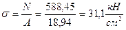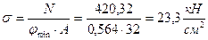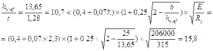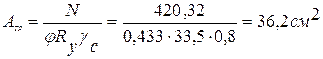 Принимаем тавр 25БТ1 , А = 45,9 см2, ix = 7,57 см, iy= 4,22 см.