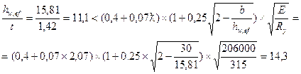 где hw,ef = h – t – R= 194,3 - 14,2 - 22 = 158,1мм = 15,81 см