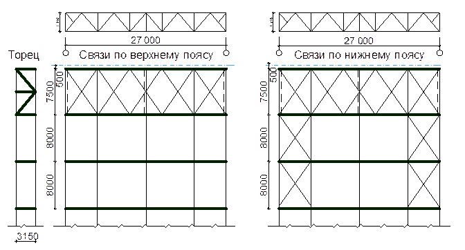 Рис. 3. Связи, обеспечивающие устойчивость стропильных ферм. 4. Определение усилий в стержнях фермы