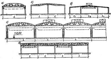 В изгибаемых и внецентренно нагруженных элементах в местах действия поперечных сил возникают главные растягивающие sГ. Р напряжения, которые уже не могут восприниматься продольной арматурой растянутой зоны. Если такие места не заармировать, то появятся наклонные трещины примерно под углом 45°. Для воспринятая главных растягивающих напряжений и предотвращения образования трещин в балках, например, ставят хомуты или поперечные стержни, а при необходимости и нижнюю продольную арматуру отгибают под углом 45—60° вверх с заделкой в сжатой зоне бетона (рис. 1.1, г). Таким образом, соединенные бетон и стальные стержни создают качественно новый материал — железобетон (или точнее сталебетон), область применения которого практически не ограничена. Основу совместной работы бетона и арматуры составляет благоприятное природное сочетание их некоторых важных физико-механических свойств, а именно: 1) сталь и бетон имеют близкие по значению коэффициенты линейного расширения — для бетона 0,00001— 0,000015, для стали 0,000012, поэтому при температурных изменениях (до 100° С) дополнительные напряжения в зоне контакта арматуры с бетоном не возникают и сцепление не нарушается, оба материала работают совместно; 2) бетон при твердении дает некоторую усадку, благодаря чему его сцепление с арматурой еще больше увеличивается; 3) плотный тяжелый бетон является хорошей защитой арматуры от коррозии и огня. Благодаря многочисленным положительным свойствам железобетона — долговечности, огнестойкости, высокой прочности и жесткости, плотности, гигиеничности и сравнительно небольшим эксплуатационным расходам конструкции из него широко применяют во всех областях строительства. Предварительное напряжение железобетона дает возможность повысить трещиностойкость и жесткость конструкций и тем самым еще более расширить область их использования, особенно для большепролетных конструкций покрытий и перекрытий. 1.2 Монолитные железобетонные конструкции Железобетонные конструкции, возводимые в проектном положении непосредственно на объекте строительства, называются монолитными. Для возведения монолитных железобетонных конструкций требуются поддерживающие подмости (леса) и опалубка (формы), в которую устанавливают арматурные каркасы и укладывают бетон. Подмости и опалубку снимают после того, как бетон приобретает достаточную прочность. Если арматурный каркас выполнен из прокатных профилей (жесткая арматура) или в виде фермочек, сваренных из круглых стержней (несущие арматурные каркасы), то опалубку подвешивают к арматуре и устройства подмостей не требуется. Монолитные железобетонные конструкции требуют значительных трудовых затрат на объекте строительства. Их применяют в массивных сооружениях, в некоторых специальных сооружениях, которые могут быть возведены без подмостей в скользящей или переставной опалубке (водонапорные башни, дымовые трубы, градирни, стены и шахты многоэтажных зданий и др.). Монолитный железобетон часто используют в конструкциях фундаментов, для устройства днищ резервуаров и т. д. 1.3 Сборные железобетонные конструкции Железобетонные конструкции, изготавливаемые на специализированных заводах, называются сборными. Такие конструкции монтируют на строительной площадке и при необходимости соединяют между собой путем сварки армату