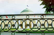 К Таврический дворец -- выдающееся произведение архитектуры строгого классицизма -- сооружен в 1783 -- 1789 гг. по проекту И. Е. Старова для кн. Г. А. Потемкина-Таврического. В глубине парадного двора, отделенного от улицы невысокой оградой (1792 -- 1793 гг., арх. Ф. И. Волков), расположен портик главного входа с двойной колоннадой. Изысканная скромность и простота фасадов дворца контрастировали с исключительной роскошью и великолепием внутреннего убранства. Первоначально Таврический дворец был открыт к Неве, от которой шел канал, завершавшийся гаванью-ковшом. Эта архитектурная перспектива, входившая в панораму невских берегов, существовала до постройки в 1858 -- 1863 гг. напротив дворца водонапорной башни и других сооружений Центральной городской водопроводной станции (арх. И. Л. Мерц, Э. Р. Шуберский). В 1906 -- 1910 гг. интерьеры здания изменили в связи с размещением в нем Государственной думы (арх. П. И. Шестов). Таврический дворец связан с революционными событиями: здесь с 27 февраля по август 1917 г. шли заседания Петроградского Совета рабочих и солдатских депутатов, работала большевистская фракция Совета. Зимний дворец
