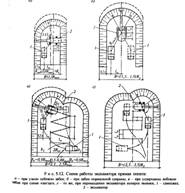 Рис. 34. Установка причалки: а - переустановка скобы со шнуром; б - причальная скоба При выполнении кладки арок, столбов, сводов используют шаблоны (рис. 35). Для подачи раствора на рабочее место каменщика удобнее пользоваться тачками, можно ящиками, которые бывают как деревянными, так и металлическими. Подавать кирпичи можно на небольшом поддоне (рис. 33, г).