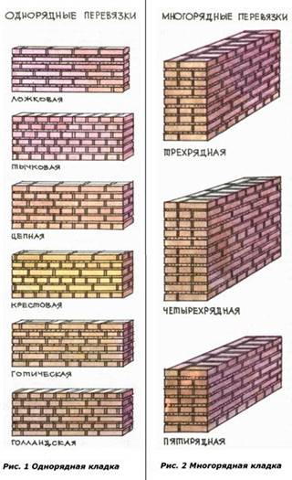 Толщина швов при любой системе перевязки должна быть около 10 мм. Через каждые 2 — 3 ряда проверяют горизонтальность кладки и при необходимости корректируют ее, уменьшая или увеличивая толщину шва, но не резко, а равномерно распределяя раствор на несколько рядов. Швы надо заполнять полностью и, пока раствор не высох, расшивать их, придав им выпуклую, вогнутую или треугольную форму. Если стену предполагается штукатурить, то швы оставляют пустыми примерно на глубину 1 см (у строителеи это называется вести кладку впус-тошовку). Начинают работу всегда от угла дома с тычкового ряда лицевой версты.