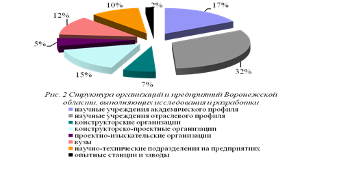 Дипломная работа: Оценка инновационной деятельности машиностроительных предприятий Воронежской областиДипломная работа: Оценка инновационной деятельности машиностроительных предприятий Воронежской областиДипломный проект выполнен студентом Отрубевым Г.В. Воронежский государственный технический университет Воронеж 2010 1. Оценка развития инновационной деятельности в РФ Инновационная деятельность России определяется значительным научно-техническим потенциалом, и в то же время низким показателем инновационной активности. Разработку и освоение инноваций на современном этапе ведут всего лишь около 6, 2% промышленных предприятий России, тогда как в США – около 30%. Уровень инновационной активности определяют медицинская промышленность (17, 8%), химическая и нефтехимическая промышленность (17, 3%), черная металлургия (10, 5%), машиностроение и металлообработка (7, 9%), топливная промышленность (5, 3%). В остальных отраслях российской экономики данный показатель меньше: в микробиологической промышленности – 5, 0%; в лесной, промышленности строительных материалов, деревообрабатывающей, целлюлозно-бумажной, в легкой, стекольной и фарфорофаянсовой промышленности – по 2, 0% [201]. Воронежская область, как и другие регионы России, имеет значительный неиспользованный инновационный потенциал. В настоящее время инновационная деятельность осуществляется преимущественно на промышленных предприятиях, в организациях малого бизнеса, академических научных организациях и вузах. В 2008г. В Воронежской области инновационную деятельность осуществляли 55 организаций, в 2009 г. - 52. Доля организаций Поволжского региона, выполняющих исследования и разработки, составляет около 8, 8 % от общего числа организаций в целом по России. С 1992 года наблюдается устойчивое снижение числа научно-технических организаций в Центральном регионе, и в частности в Воронежской области, что связано с ежегодным сокращением финансирования научных организаций и малых инновационных предприятий, особенно на современном этапе финансового кризиса. Финансирование инновационной деятельности производилось в основном за счет собственных средств организаций (2008г. - 74, 9%, 2009г. – 84, 4%), федерального бюджета (2008г. - 6, 7%, 2009г. – 7, 3), прочих средств (2008г. – 18, 4%, 2009г. – 8, 3%) [209]. В 2009 г. 92, 7% крупных и средних организаций не осуществляли инновационных проектов. Приватизация бывших отраслевых НИИ не дала ожидаемого эффекта из-за резкого снижения заказа на проведение научных исследований и разработок в промышленности (рис. 1).