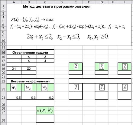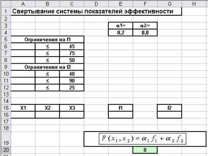 функций, в ячейку F20 – формулу для расчета функции Чрезвычайно важным является использование в данном методе общей для всех функций системы ограничений.