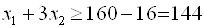 для расчета При вторичном запуске Поиска решения наряду с уже введенными на первом этапе ограничениями вводим еще одно дополнительное ограничение A26>=144. В результате расчета получим ответ: