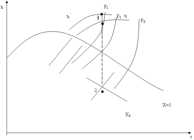 1. Зв’язане ( при одному й тому ж степені сухості пари -x2 , на виході з турбіни ) підвищення початкового тиску Р1 і t1.