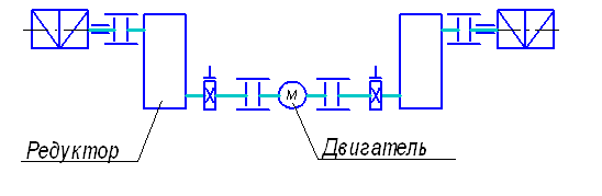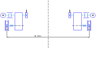 Механизм передвижения грузовой тележки состоит из двух приводов: один