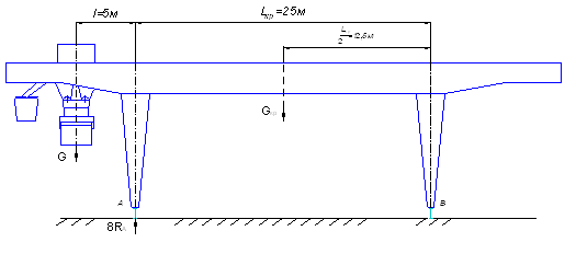 тележки. Пролет проектируемого крана 25000 мм, а база 14000 мм. Колея