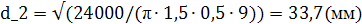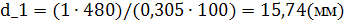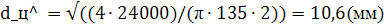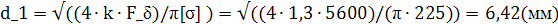 4. Определяем внутренний диаметр резьбы, принятый в качестве расчетного диаметра болта: