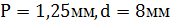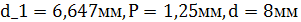 По наибольшему диаметру (вычисленному с учетом устойчивости) подбираем резьбу. Таблица 1. Параметры резьбы