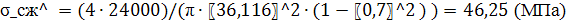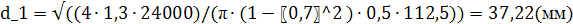 где: k – коэффициент, учитывающий скручивание тела винта моментом в опасном сечении (принимаем k=1,3); j - коэффициент уменьшения основного допускаемого напряжения (j=0,5); a - отношение внутреннего диаметра d0 к внешнему d1 (a=0,7).
